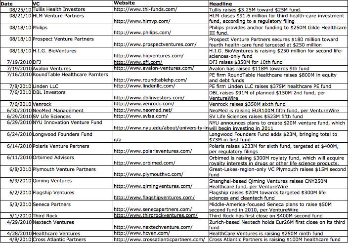 The fund-raising activities continue, including a $523M fund raised by SV Life Sciences, as shown in Table 1.